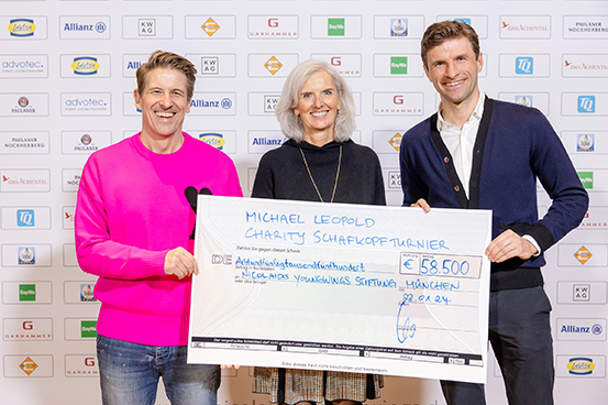 Welch' herrliche Idee von Sky-Moderator Michael Leopold und der Nicolaidis YoungWings Stiftung zugunsten trauernder Jugendlicher! Im Paulaner am Nockherberg sammelten sie beim 8. Charity-Schafkopfturnier mit prominenten Gästen aus Sport, Kultur und Wirtschaft 58.500 Euro! Gemeinsam mit Botschafter Thomas Müller nahm Stiftungsvorstand Karin Neumeier den Spendenscheck entgegen.