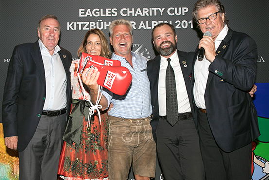 Am 30. Juni passten alle perfekt zusammen – selbst Petrus spielte nach Dauerregen genau die sechs Turnier-Stunden strahlend mit – und dank der Mithilfe der Eagles mit seinem Business-Club sowie spendierfreudiger Teilnehmer kamen nicht weniger als 50 000 Euro jenen zugute, die es nötig haben. Dank der Versteigerungs-Künste von Frank Fleschenberg und Michael Hartl wurden weitere Sozial-Projekte in Kitzbühel unterstützt.