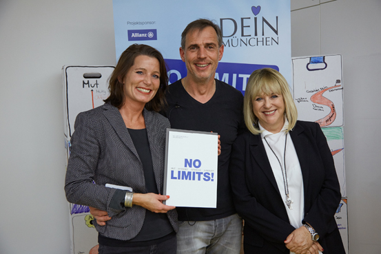 NO LIMITS arbeitet in München eng mit den Mittelschulen an der Simmern- und der Leipziger Straße zusammen, fand in dem Motivations-Coach Joachim Franz einen engagierten Mentor und mit der Münchner Allianz Real Estate sogar einen Sponsor. CEO Francois Trausch, 52, zu den Jugendlichen und Gästen bei der Projekt-Vorstellung in München-Schwabing: „Wir sehen es als Verpflichtung an, einer so tollen Idee zu helfen.“ Der Manager, der beim japanischen Erdbeben 2011 und der Fukushima-Atomkatastrophe 2013 persönliche Stress-Situationen erlebte, motiviert mit seinem Team die Kinder und Jugendlichen von NO LIMITS: „Wir stehen als Unternehmen voll hinter dem Projekt mit Bildung, Kultur und Sport, um mit den Inhalten den Jugendlichen Mut, Offenheit, Interesse und Ausdauer zu vermitteln."