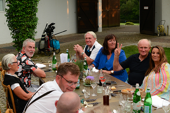 Glänzend die herrliche Idee von Club-Fee Susanne Braun, die Lang-Tische in einer X-Form im Innenhof zu präsentieren. Auch eine Top-Idee: das „Nearest to the Fassl" von der Gastro „Herrschaftszeiten“. Und wie immer wenige, aber wichtige Worte von Porsche-Geschäftsführer Thorsten Günther, der seit über einem Jahrzehnt – als Nicht-Golfer (!) – ein Herz für die Golfer hat, wieder prächtige Präsente für die Sieger parat hatte – und noch passendere Dankes-Worte an die Adresse von Clubmanager Kariem Baraka. Dem ist das neue Image des gesamten Golfclubs zu verdanken, verstand er es in den letzten Jahren doch beeindruckend, den einst elitären Ruf des „Riedhof“ gegen einen sportlich-normalen zu ersetzen. Passt perfekt!