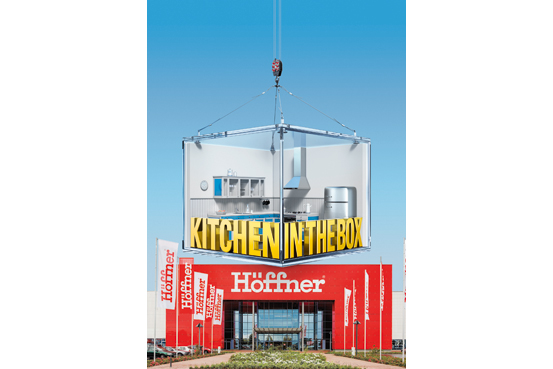 Ab 5. Oktober wird’s spektakulär: Dann hängt eine "Kitchen in the box" an einem Riesen-Kran vor dem Möbelhaus, und die Kunden können am Wochenende (9.-11.10. mit verkaufsoffenem Sonntag!) eine Küche im Wert von 20 000 Euro gewinnen. Die Küche „hängt“ vom 5. bis 11.10. in einem (abends beleuchteten) gläsernen Show-Container in ca. 40 m Höhe, und in den drei Aktionstagen (09.10-11.10) haben Kunden mit einem Kaufbeleg die Chance, diesen Container über ein „Glücksrad“ zu heben oder zu senken. Wer den Container-Würfel auf den Boden bringt, gewinnt die Traumküche... Zusätzlich winken 5- und 10 Euro-Sofort-Gewinne!