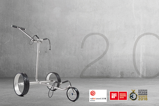 ...begann letztes Jahr das innovative Caddy-Modell JuCad Ghost Titan seine Erfolgsstory mit drei hohen Design-Auszeichnungen. Dieses Jahr begeistert die Golfer der JuCad Ghost Titan 2.0 sowie drei weitere Caddy-Modelle 2.0 mit integriertem Technikpaket: Der Elektrocaddy JuCad Ghost Titan 2.0 mit den Zweispeichenfelgen und bewährten technischen JuCad Features bewegt sich mit der neuesten Steuerungs- und Antriebstechnik „brushless“ leise über alle Fairways. Zusätzlich zum elektronischen Bremssystem sorgt die elektronische, beidseitige Parkbremse auf abfallenden Hängen für einen festen und sicheren Stand des Caddys. Das neue Technikpaket beinhaltet die neueste Motoren- und Parktechnik, Magnetstecker sowie eine integrierte Ladestands-Anzeige. Mit dem stabilem T-Griff kann der Caddy beidhändig geführt werden und bietet zudem einen sichereren Halt auf unebenem Gelände. Zudem ist im T-Griff eine neigungsverstellbare Schirmhalterung integriert. Besonders praktisch: der Magnetstecker am Ladegerät und am Powerpack sorgt für eine sekundenschnelle und sichere Verbindung.