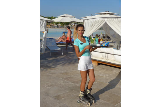 Vor allem aber verblüffte uns das „Reich“ durch (s)eine „All-inclusive-Philosophie“, die herrlich funktioniert. Wenngleich man sich immer fragt, ob sie sich für die Betreiber-Familie Öztürk auch wirklich rechnet... denn außer für Trinkgeld muss man während seines Aufenthaltes nicht einmal das Portemonnaie zücken! All inclusive, dieser uralte Begriff aus anfänglichen Club Med-Zeiten der 70er Jahre, erhält hier im Regnum eine völlig neue Dimension. Nicht nur bei Köstlichkeiten durch den Strand-oder Pool-Service (herrlich das „Essen auf Rädern“ durch fesche Rollschuh-Girls!), sondern auch bei allen Getränken zu allen Mahlzeiten, bei der Kinderaufsicht, der verführerischen Patisserie im Erdgeschoss etc. etc. Nur die Spa- und Beauty-Behandlungen gehen auf Rechnung. Man ist fast geneigt zu sagen: Wär’ ja auch noch schöner...