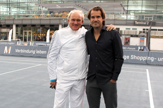 Das muss man Tennis-Profi Tommy Haas lassen: Er ist auch ein Medien-Profi. Geschlagene 65 Minuten stand der beste deutsche Tennisspieler nach Boris Becker trotz nur 12 Grad in leichter Hose und Hemd am Rand der beiden Tennisfelder am Münchener Flughafen, um auch jedem Journalisten gerecht zu werden. Die Tennisfelder werden seit 2015 alljährlich zu den Open als Promotion-Plattform verlegt, was sich als gute Idee erwies. Zuvor hatte der Sieger der BMW Open von 2013 interessiert das Presseturnier verfolgt, in dem ein Dutzend Medien-Spieler, darunter auch einige Meden-Spieler, die vorbeilaufenden Fluggäste mehr oder weniger begeisterten. Zumindest lachten viele...