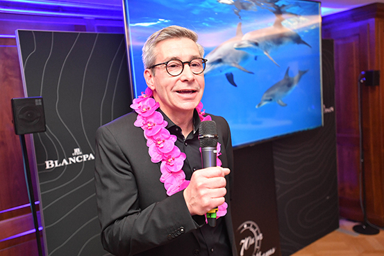 Das hat selbst München noch nicht erlebt: eine Live-TV-Übertragung aus Französisch-Polynesien in die kleine, feine Blancpain-Boutique in der Maximilianstraße! Technik-Tüftler machten es möglich, dass der berühmte Taucher, Biologe und Wissenschaftler Laurent Ballesta nicht nur mit Münchnern, sondern auch mit VIPs weltweit direkt plaudern konnte – begleitet von gestochen scharfen, atemberaubenden Unterwasser-Bildern. Der Grund: Der Franzose ist Botschafter des weltweiten „Blancpain Ocean Commitment“, das die Uhrenmanufaktur (gehört zur Swatch Group) zum Schutz der Weltmeere und Tiere schon 2013 gründete – und mit jedem Uhrenverkauf unterstützt. Und Mitte Februar gab’s zum 70. Geburtstag der Uhren-Ikone „Fifty Fathoms“ eine neue (Taucher-)Uhr namens‚ Tech Gombessa‘… Nur 60 Blancpain-Insider aus Deutschland, Österreich und der Schweiz waren zu dieser U(h)r-Aufführung über einen blauen Teppich und mit vorzüglichem Asia-Catering von „Aimy“ in die Maximilianstraße geladen worden... Im edlen Ambiente seiner Blancpain-Boutique war Brand Manager Wolfgang Theis nach geglückter Fern-Übertragung sichtlich ergriffen: „So eine exklusive Uhren-Präsentation habe selbst ich mit über 30 Berufsjahren noch nie erlebt! Unser CEO und Präsident Marc A. Hayek ist ja selbst Taucher – ihm liegt das Überleben seltener Fische und der gesamten Unterwasserwelt sehr am Herzen.“