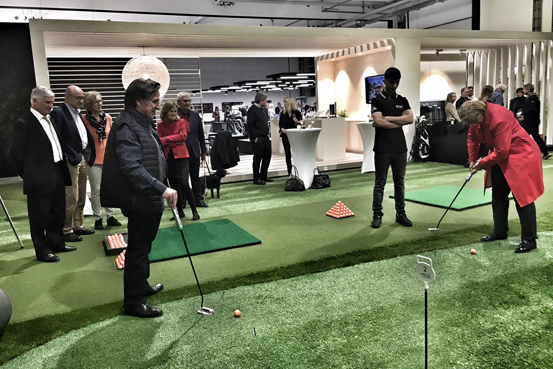 Die neueste Serie der B.i.G.-Golfschläger sind schon optisch ein Traum und spielen sich auch so. Kernpunkt bei der Besichtigung von ca. 30 Opening-Gästen war die Abteilung "Spine“, in der per Laser-Punkte genau die Bewegung des B.i.G.-Schaftes mit denen anderer Produkte auch für Laien leicht ersichtlich verglichen werden kann. „Der Hammer!“ war wohl an diesem Abend das meistgesagte Wort, als jeder Gast ersehen konnte, wie „wild“ sein eigner Schläger hin-und her schwang- und wie ruhig der B.i.G.-Schläger. Die Hauptursache für einen kontrollierten Schwung….