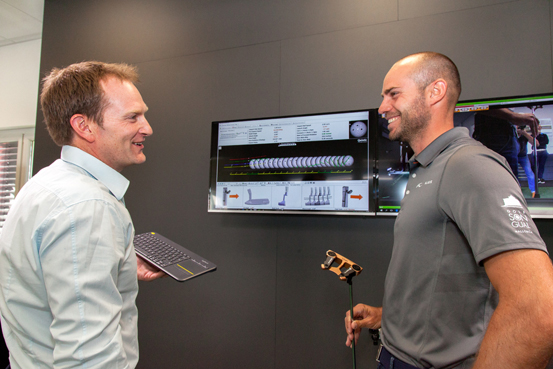 Auch in Hirschberg dabei war Dr. Paul Hurrion. Der „Putt-Professor“ aus Birmingham ist Erfinder der weltweit anerkannten Analyse-Software namens „Quintic“, die im Hirschberger „Putting Performance Center“ installiert wurde. Mit Hightech und vier Highspeed-Kameras, millimetergenau vermessener 12 m Putting-Bahn (beidseitig für „Linke“ und „Rechte“) und ausgetüfteltem Licht-System. Nichts bleibt hier im Verborgenen, weder Treff(un)genauigkeiten, Abweichungen vom idealen „roll“, An-und Abwinkelungen des Putters beim Treffpunkt, Augenhöhe zum Ball oder die richtige Auswahl der diversen „Putter-Zutaten“ am Konfigurator. Wie beim Autokauf...