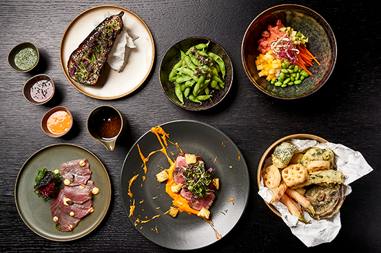 Auf der Speisekarte findet man alle Feinheiten der asiatischen Küche: Thunfisch Tataki, Hamachi, Enten-, Oktopus- oder Seetang-Salat, knusprig gebratenen Tintenfisch, Gemüse Tempura, Black Cod, Hummer oder Miso Aubergine. Dazu eine Auswahl an Sake oder asiatisch-angehauchten Cocktails wie Yuzu Spritz oder Asian Negroni.